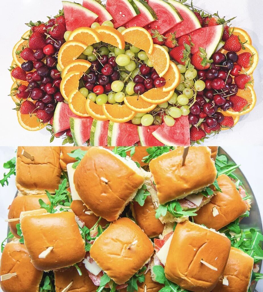 We have fruit, mini sandwiches, veggies and sweet platters that