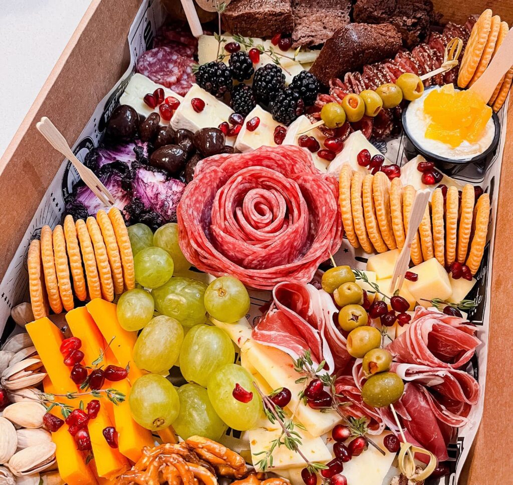 Popular Charcuterie Menu Items Halloween Board Celebrate Halloween with our limited-edition Spooky Charcuterie Board. Order Here Charcuterie Cups & Boats Boths are perfect formanaging proportions Order Here Charcuterie Boxes Perfect for special ocassionsor for that special one Order Here Charcuterie Boards Great for parties and smallsevents Order Here Grazing Tables Popular service for mediums andlarge events Get A Quote Fruit Platter Reach out today and let usKnow about your needs Order Here Vegie Platter Perfect for special ocassionsor for that special one Order Here Sweet Platter Boths are perfect formanaging proportions Order Here Mini Sandwiches Platter Popular service for mediums andlarge events Order Here